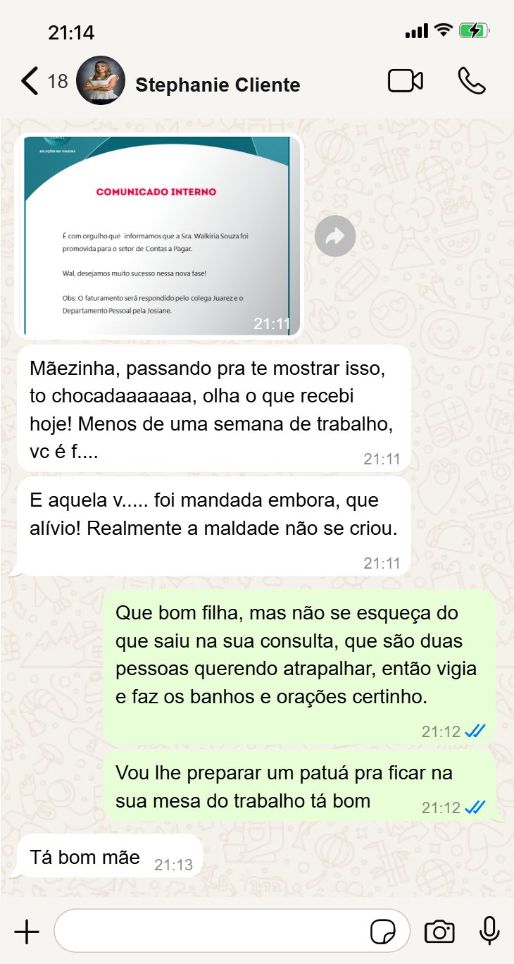 Aviso: resultados e prazos variam de pessoa para pessoa. O atendimento é espiritual e não substitui acompanhamento médico, psicológico ou jurídico quando necessário.